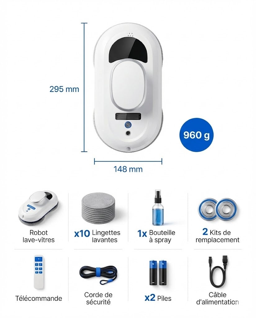 Le seul robot qui nettoie les angles à 100%. Technologie Double Spray pour les plus exigeants.