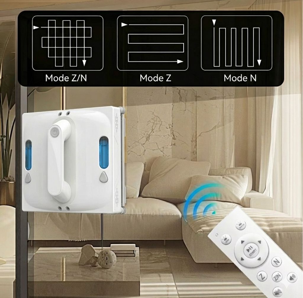 Le robot s'accroche à la vitre grâce à une aspiration puissante et se déplace automatiquement en suivant un parcours intelligent en « Z » ou en « N » pour couvrir toute la surface.